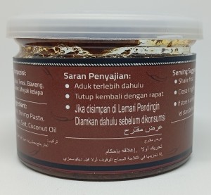 Dibuat dari bahan alami Indonesia, Cabai Rawit Merah, Bawang Merah, Bawang Putih, Garam, Terasi, kaldu jamur dan Minyak sawit